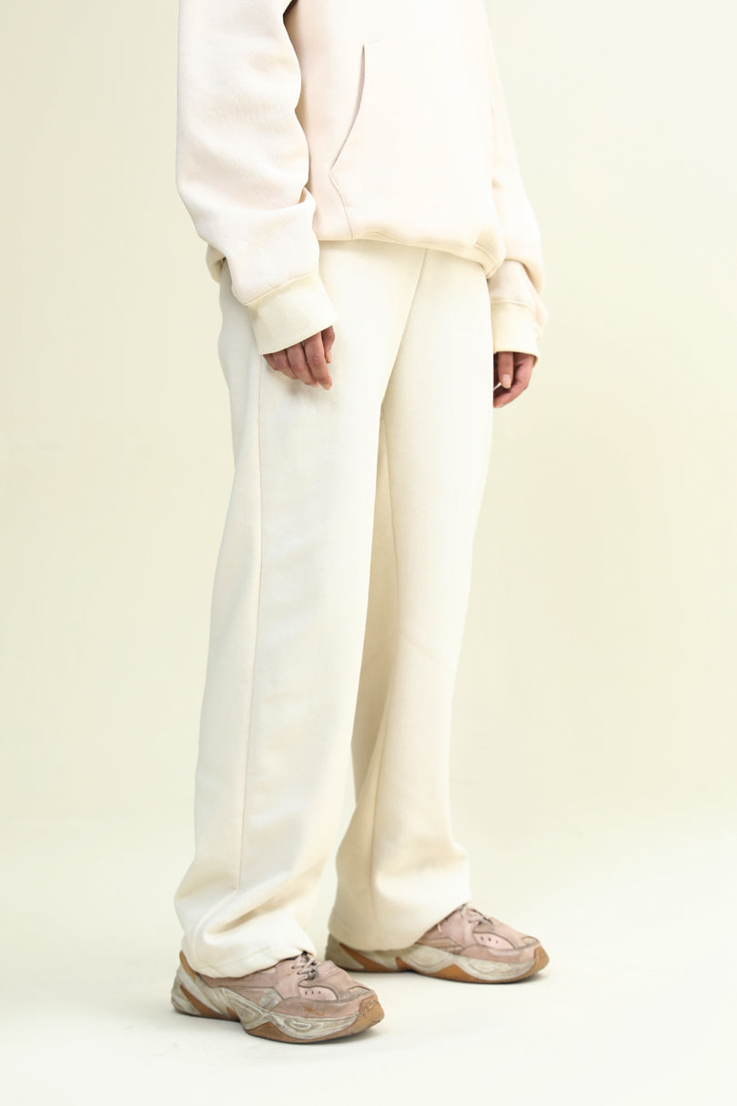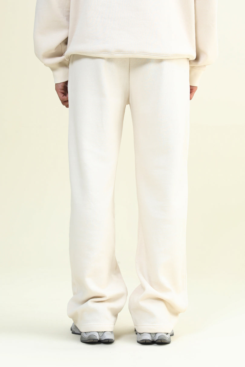 Baggy Loose fit trouser with side & back pockets, draw strings and printed logo. in cream color.
