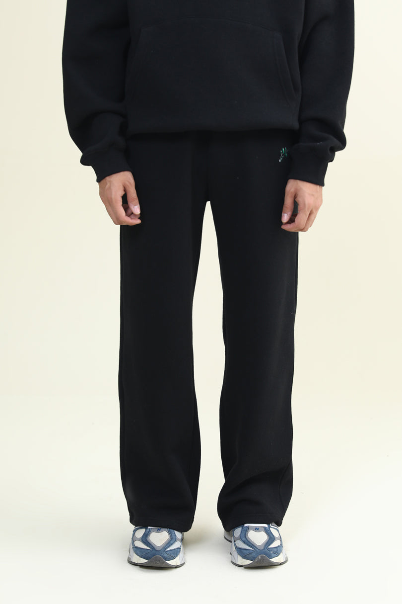 Baggy Loose fit trouser with side & back pockets, draw strings and printed logo. in black color.