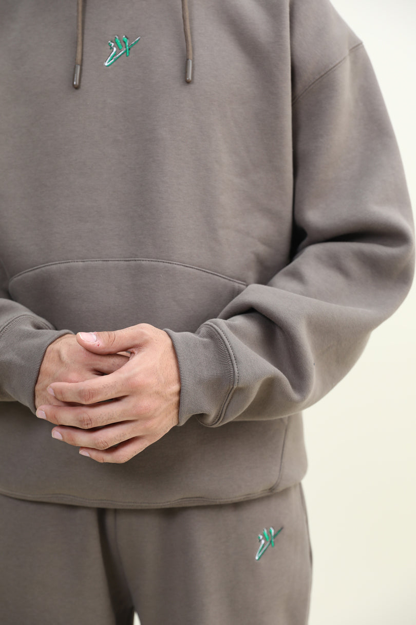 Basic Oversized hoodie with front pocket and draw strings, in brown color